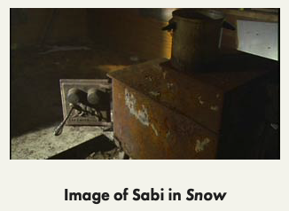 Another quality shared by both films is the use of landscape/nature and lived objects to transmit both the passage of time and the sense of melancholia experienced by both characters (Loeffen and Genjuro). Japanese art and aesthetics has a word to express this feeling: “sabi.” Two definitions place the term sabi in an historical and artistic context that relates to both Ugetsu and Snow: Firstly,