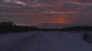 As he reiterated in Montreal during his introduction to the film at the 2006 FNC, the years of living in the remote region of Zama was an inspiration in making Snow; as well as his first feature film, Mirror, which was also shot in Zama and is in many respects a run through for Snow. Both Snow and (less so) Mirror are designed as mood pieces structured around the idea of ‘cabin fever,’ what living in deep isolation does to one’s state of mind, and consequently one’s sense of perception. The central character Loeffen (played by Lambert Loeffen) works at an oil field in Alberta, Canada 150 miles from the nearest settlement or town, Zama City. Zama City is located in the Northwest Corner of the Province of Alberta, roughly 900 kilometres (560 miles) north of Edmonton. Loeffen’s days revolve around work, which includes, when he is lucky, day trips to Zama to purchase work supplies. There is not much of a plot in Snow, just a sequence of scenes following Loeffen as he gets his work order, drives to Zama and seeks some companionship and diversion. Although the potential for diversion might not seem great in Zama –a diner, a convenience store and the odd ‘party’ at the town hall– Loeffen looks forward to his trips to Zama. The film details such a day.